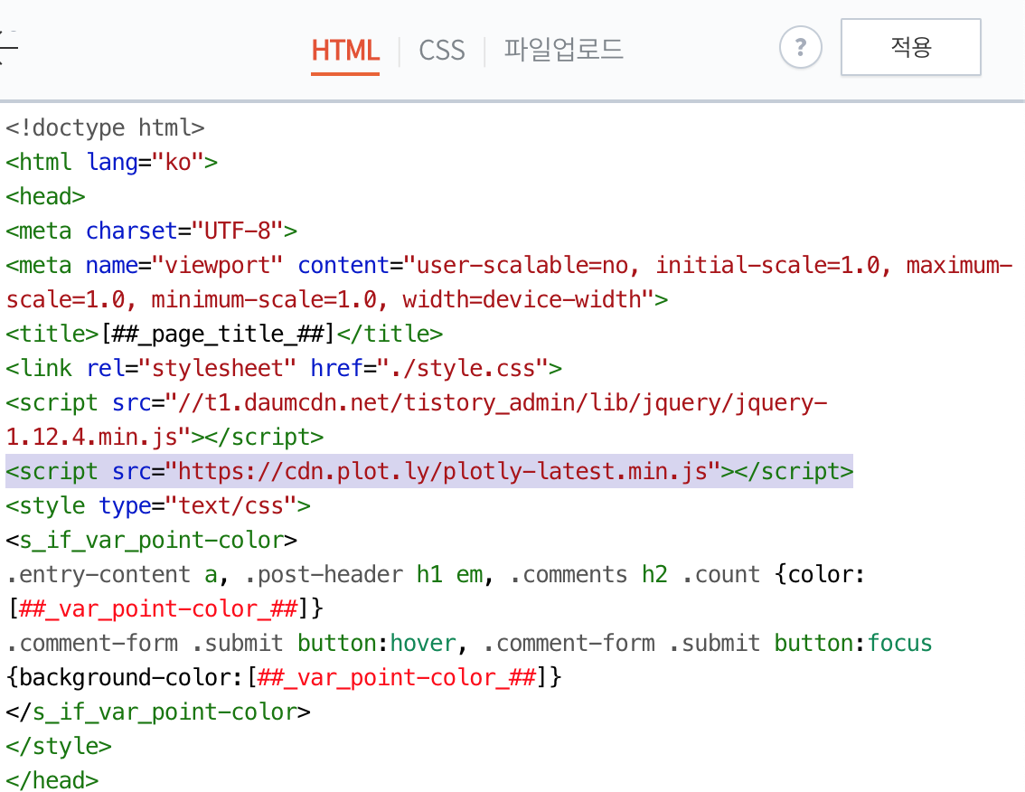 plotly를 이용한 그래프를 자주 올릴 것 같으면 매번 스크립트를 넣어주기 귀찮으니 이 방법이 좋은 것 같다.