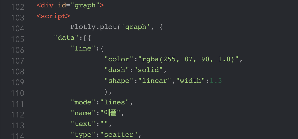 다음으로는 웹페이지에 올린 그래프를 준비해야한다. 이 또한 방법이 다양한 것 같은데 나는 python으로 plotly 그래프를 그렸다.
