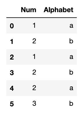 'Alphabet':['a', 'b', 'a', 'b', 'a', 'b']})