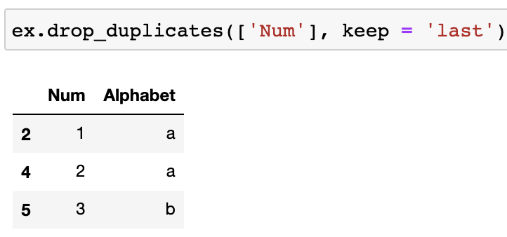 파라미터로 열을 지정해주면 지정된 열을 기준으로 중복을 제거해준다.